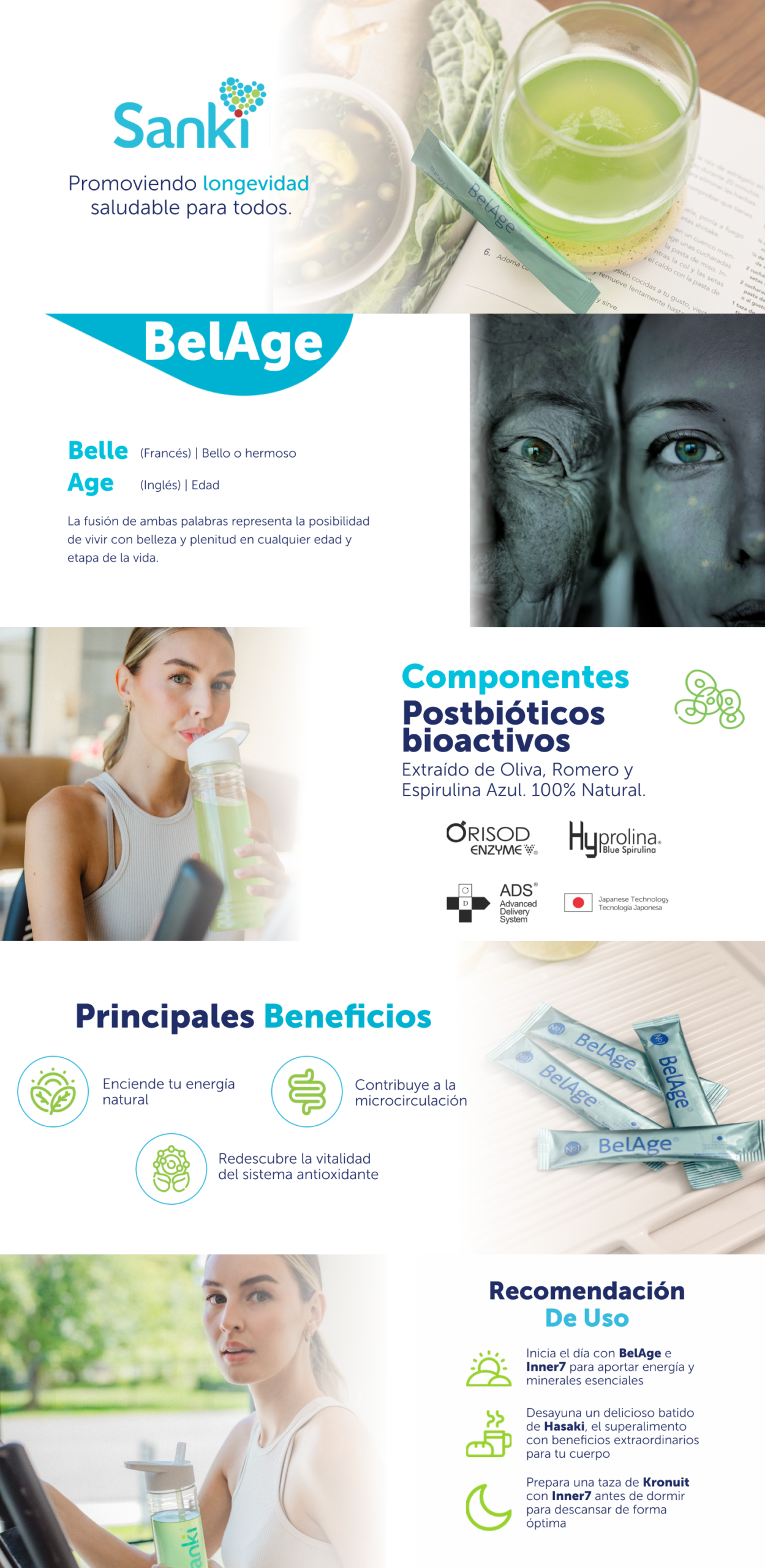 Experimenta el poder de los postbióticos de BelAge, que llegan directo a tus células. Descubre una vida llena de bienestar y longevidad, buscando siempre lograr los niveles óptimos de energía, oxígeno y poder antioxidante.